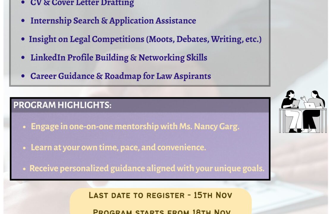 Vidhi Parivartan is delighted to announce the launch of its Success in Law School – Mentorship Program 2025, designed exclusively for law students who wish to make the most of their law school journey through guided learning, professional development, and personalized mentorship.